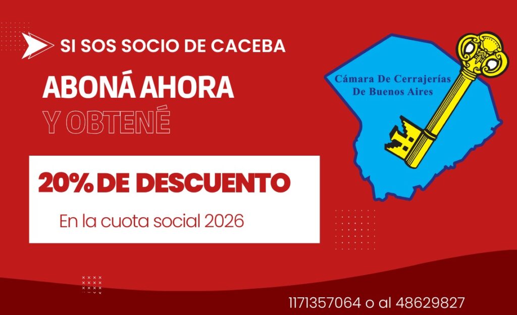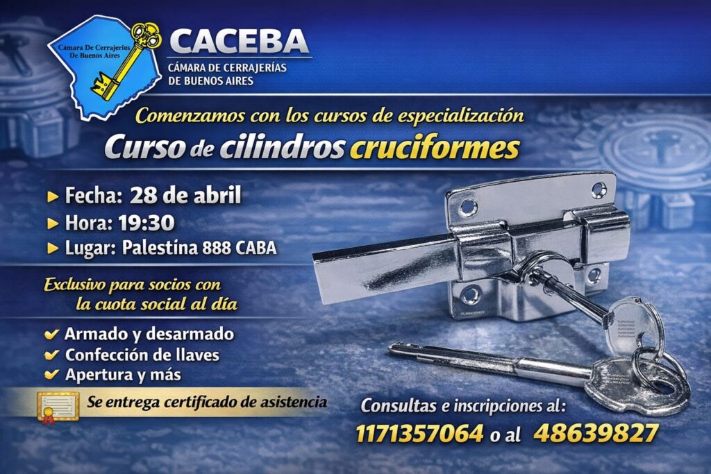 13 Abr 2026 Inicio del Curso Anual de Cerrajería Domiciliaria 2026 13 abril, 2026 By Yamila Patelli El pasado jueves 9 de abril se dio inicio, en CACEBA, al Curso Anual de Cerrajería Domiciliaria 2026. En esta nueva edición...Continue reading