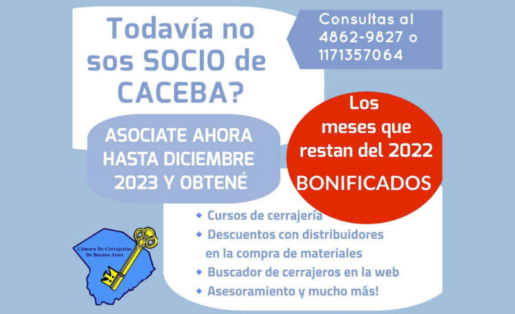 06 Ago 2022 Todavía no sos socio de CACEBA? 6 agosto, 2024 By Yamila Patelli Aprovecha la oportunidad de ser socio de CACEBA. Asociándote a partir de octubre 2022, los meses que restan de este año serán bonificad...Continue reading