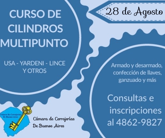 06 Ago 2021 CURSO DE CILINDROS MULTIPUNTO (USA, YARDENI Y MÁS) 6 agosto, 2024 By Yamila Patelli El Sábado 28 de agosto estaremos dictando en nuestra sede social el Curso de Cilindros Multipunto (Usa, Yardeni, Lince y otros), en el ...Continue reading