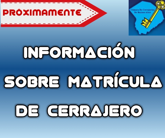 05 Ago 2020 MATRÍCULA DE CERRAJERO 5 agosto, 2024 By Yamila Patelli Tenemos el agrado de comunicar en el los próximos días contaremos con la información correspondiente a la MATRICULACIÓN como cerrajero....Continue reading