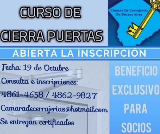 04 Ago 2019 Inscripción al Curso de PUERTAS BLINDADAS 4 agosto, 2024 By Yamila Patelli Se encuentra abierta la inscripción. El curso es exclusivo para socios y se llevará a cabo el sábado 23 de Noviembre a ...Continue reading