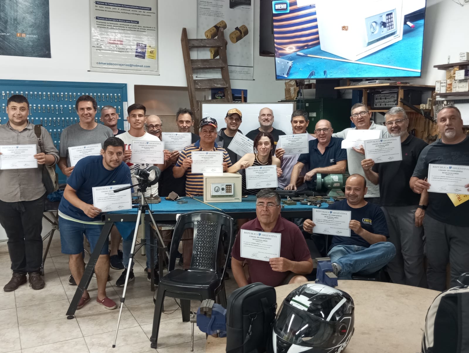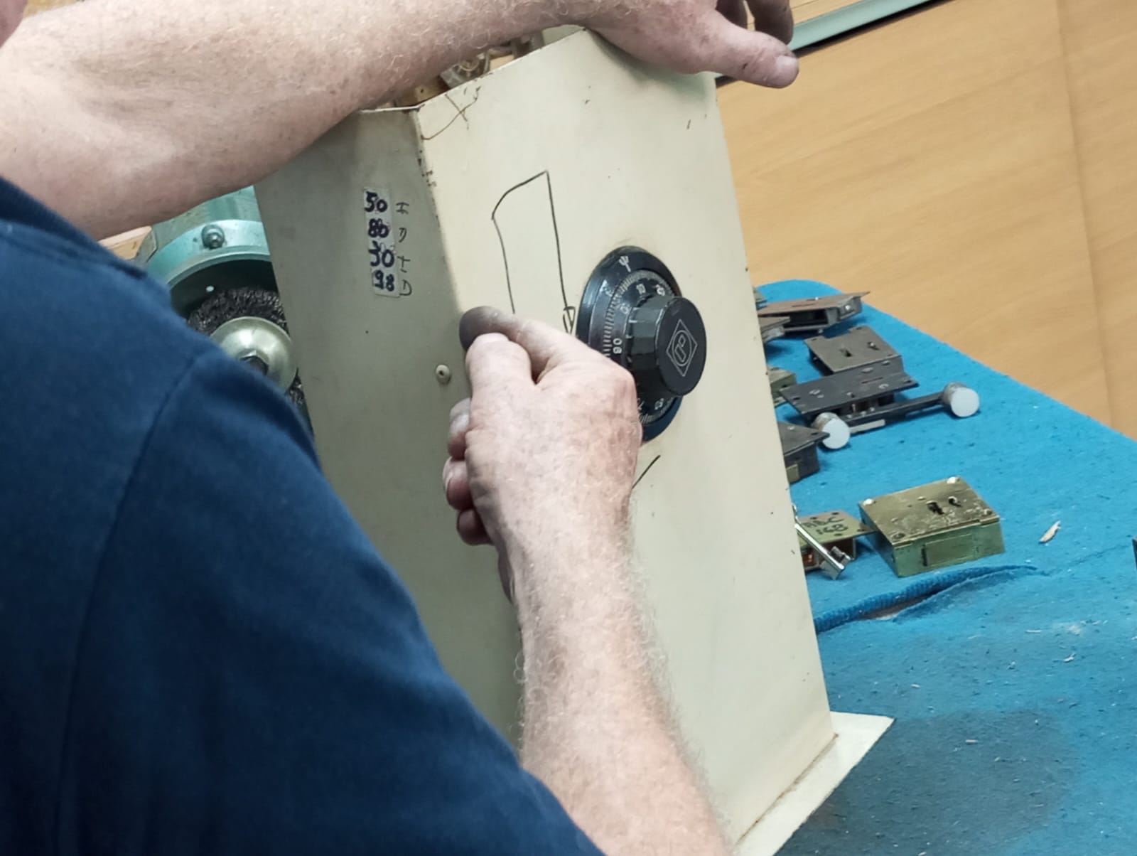 Compartimos las fotos del curso de cajas fuertes realizado en Caceba el martes 26 de noviembre. Felicitamos al socio Sergio López, quien ha completado los 8 cursos de especialización obteniendo su diploma de OFICIAL CERRAJERO.