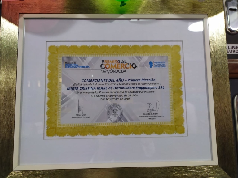 Distribuidora Frappampino SRL ha sido nombrada por el Gobierno de Córdoba, como Primera mención al Comerciante del Año 2019, para nuestro rubro.