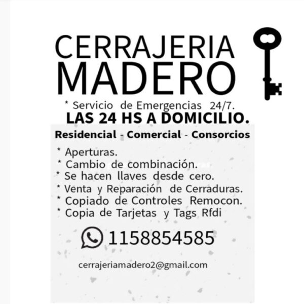 FERNANDEZ, Arturo Dirección: Villa Madero Zona de servicios: CABA y La Matanza Tel.: +54 9 11 3299-7931 Mail: cerrajeriamadero2@gmail.com